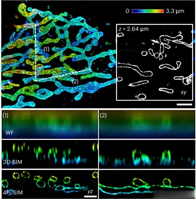4Pi-SIM实现了约100nm的三维各向同性分辨率,能够详细呈现从细胞骨架到各种膜结构等广泛的亚细胞结构,为细胞生物学研究提供了前所未有的清晰度和细节。